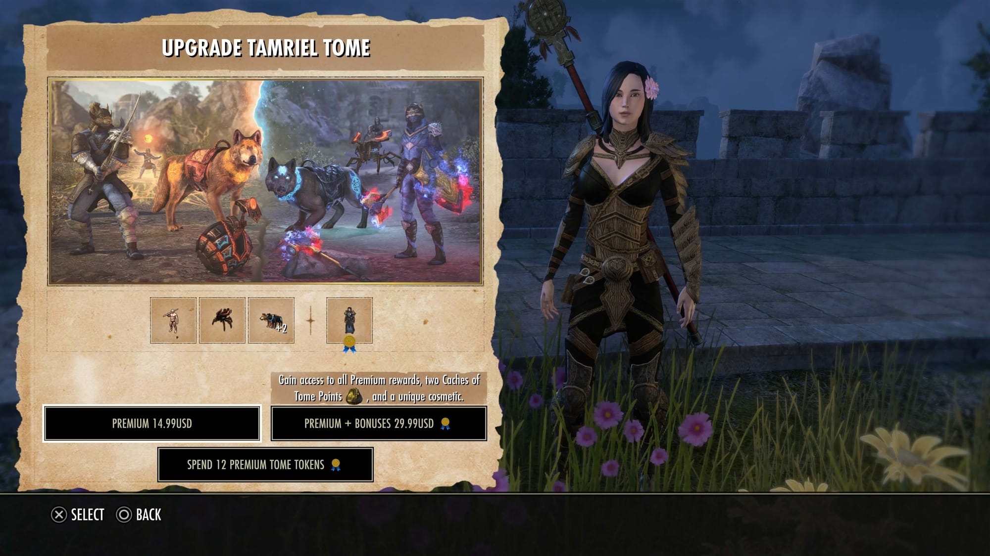 Players who purchase the Premium Tamriel Tomes pass unlock additional cosmetics, mounts, and utility rewards.
